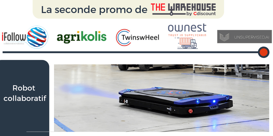 iFollow : Jeune pousse nantaise, iFollow développe un robot collaboratif pour déplacer les marchandises au sein des entrepôts. Les fondateurs Vincent Jacquemart et Nicolas Menigoz ont déjà mené des tests avec des distributeurs comme Toupargel.